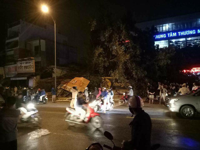 Theo clip, cây đa cổ thụ bật gốc đè đổ sập một số cửa hàng kinh doanh, trong đó có cửa hàng Thế giới di động đã bị đè nát, sập hoàn toàn.