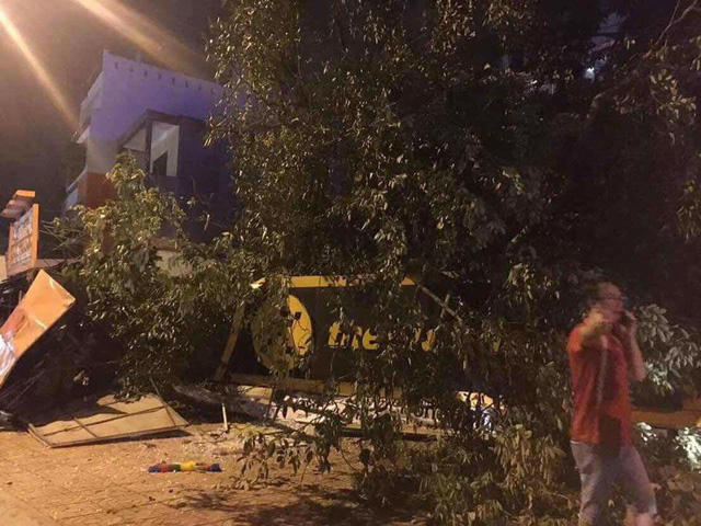 Clip: Cây to bật gốc đè nát cửa hàng Thế giới di động. (Nguồn FB Khá Euro).