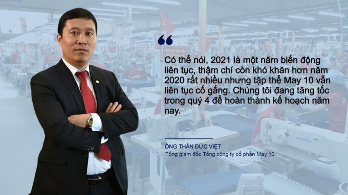 Có thể nói, 2021 là một năm biến động liên tục, thậm chí còn khó khăn hơn năm 2020 rất nhiều nhưng tập thể May 10 vẫn liên tục cố gắng. Chúng tôi đang tăng tốc trong quý 4 để hoàn thành kế hoạch năm nay.