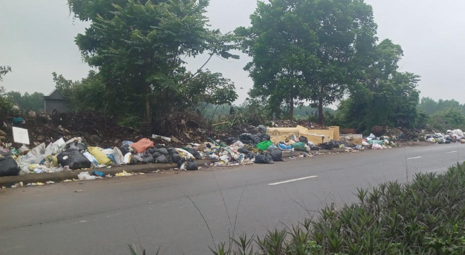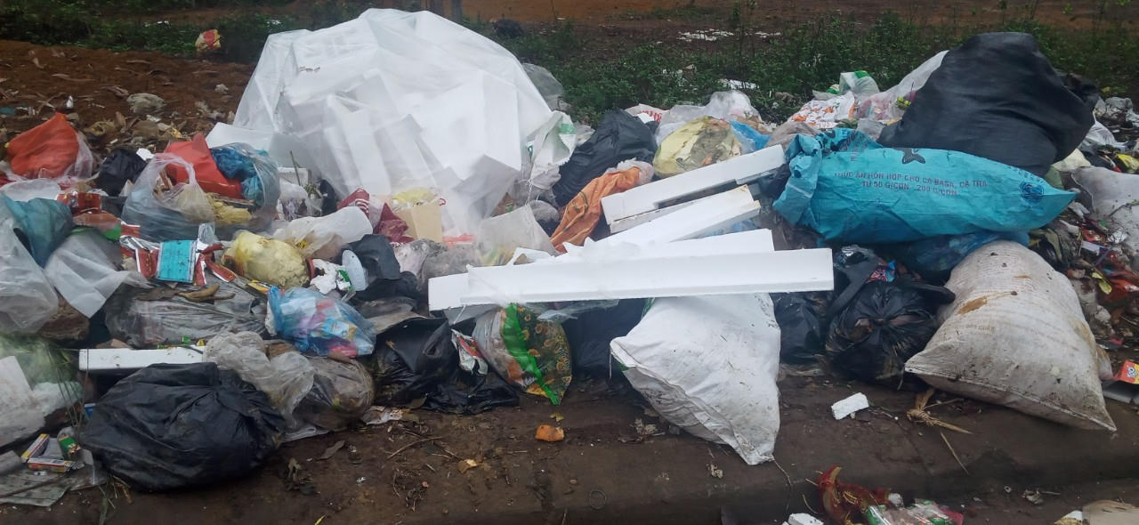 Rác thải tập kết dọc tuyến đường mòn Hồ Chí Minh.