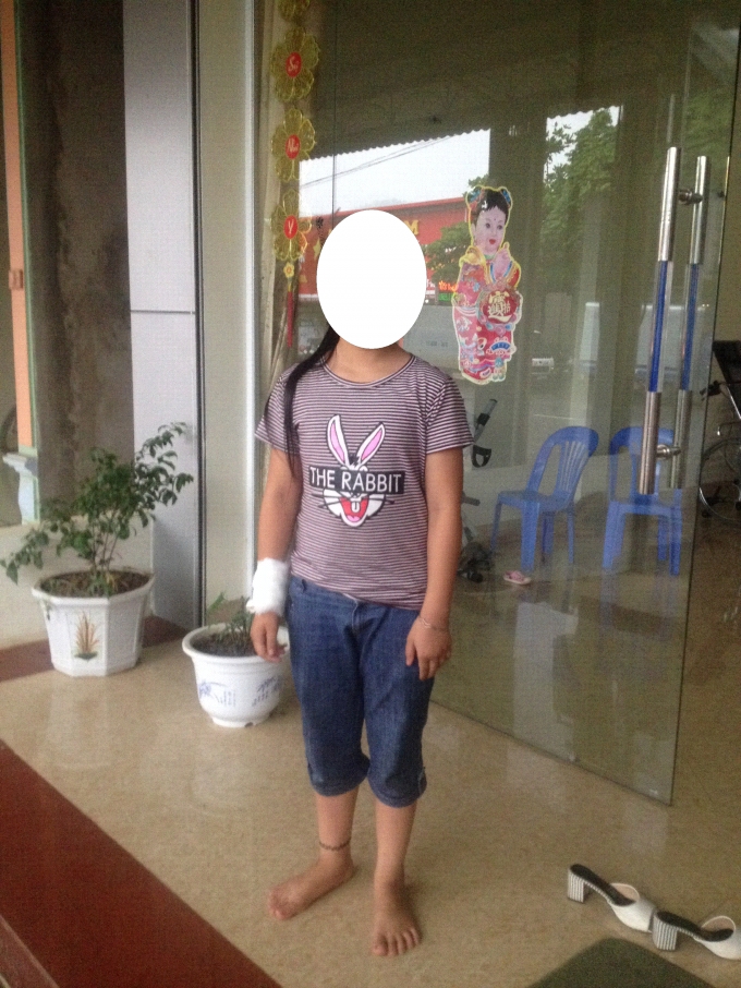 | Cháu P.T.H và vết cắt ở tay để tự tử trước hành vi dâm ô của người hàng xóm là bạn của cha mình. |
