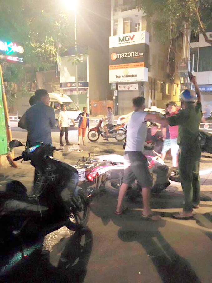 Thông tin ban đầu từ một số người chứng kiến cho hay, khoảng hơn 1h sáng cùng ngày, họ nghe thấy tiếng xe va quệt tại địa điểm trên. Sau đó, nhiều người thấy một nam, một nữ dắt 2 chiếc xe gắn máy dựng ngay đầu hẻm 225 đường Khánh Hội, trong đó cô gái bị đau ở chân.