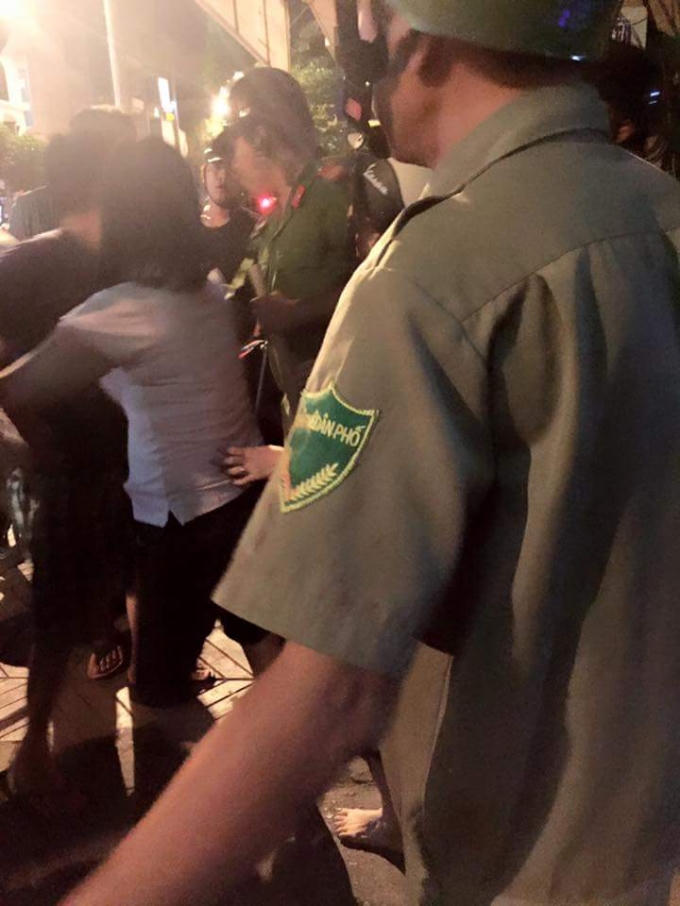 Đúng lúc đó, tổ tuần tra Công an phường 3 (quận 4) đi làm nhiệm vụ qua đó nên kịp thời phát hiện sự việc. Lực lượng chức năng bao gồm các chiến sĩ công an và dân phòng đã lao vào can thiệp.