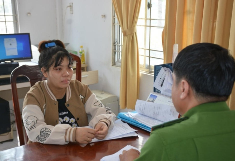 Nguyễn Thị Thùy tại cơ quan công an. Ảnh: Công an Đồng Tháp