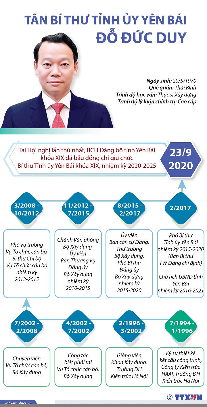 Đồng chí Đỗ Đức Duy, Phó Bí thư Tỉnh ủy khóa XVIII, Chủ tịch UBND tỉnh Yên Bái được bầu giữ chức Bí thư Tỉnh ủy Yên Bái khóa XIX, nhiệm kỳ 2020 - 2025.