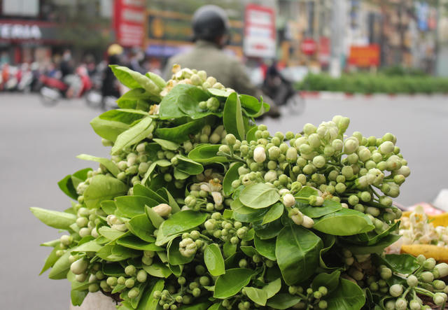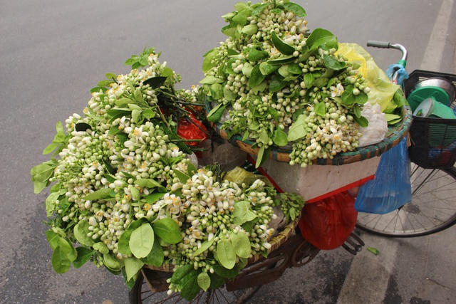 Sau Tết, khi hoa đào, hoa mai, quất cảnh đã tàn, dân Hà Thành lại "rủ nhau" mua những chùm hoa bưởi thơm nức trưng trong phòng hoặc dùng để ướp trà, bột sắn.