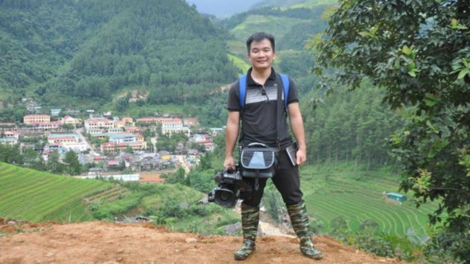 Nhà báo trẻ Đinh Hữu Dư những ngày tác nghiệp trong bão lũ (trước khi mất).