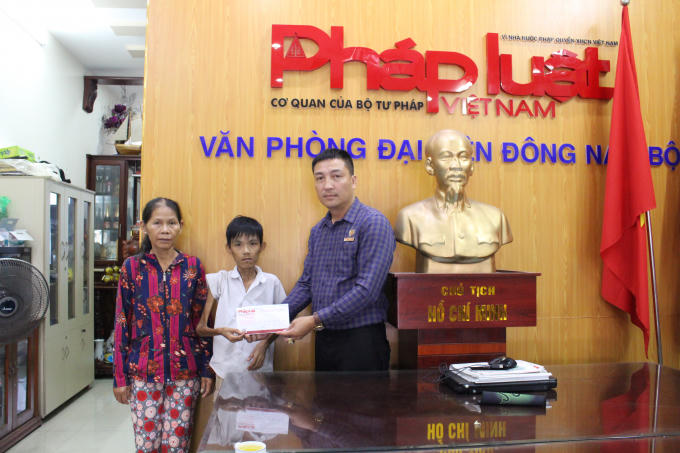 Ban lãnh đạo Báo Pháp luật Việt Nam, Văn phòng Đông Nam Bộ trích quỹ thiện nguyện hàng năm ủng hộ trực tiếp cho anh Khanh 10 triệu đồng.