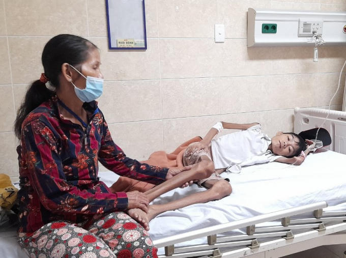 Đã 31 tuổi nhưng anh Khanh chỉ nặng hơn 10 kg, ngày ngày phải chịu đựng cơn đau theo mẹ đi bán bánh đa dạo kiếm sống, nuôi cha bại liệt.