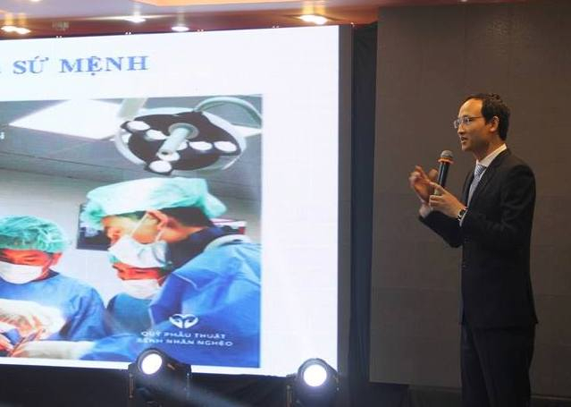 | Bác sĩ Khánh tại đêm ra mắt "Quỹ phẫu thuật bệnh nhân nghèo". |