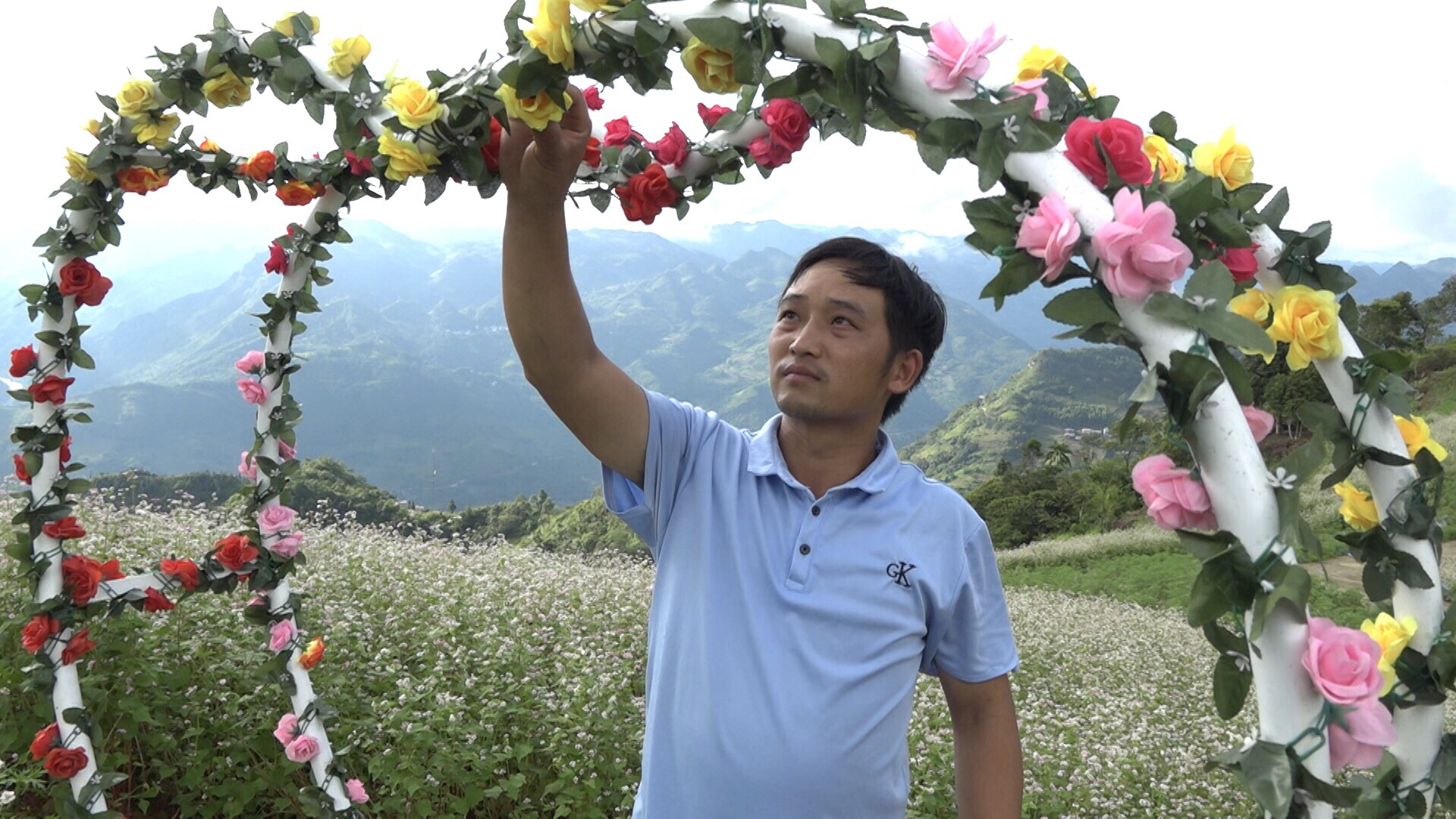 Chính vì vậy năm đầu tiên anh cũng chỉ trồng hoa tam giác mạch và dựng tạm vài cái chòi đơn giản. Dần dà, khách du lịch đến tham quan, check - in ngày càng nhiều.