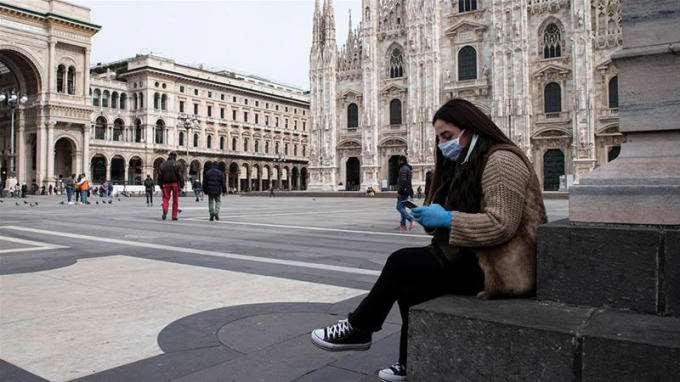 Du khách đeo khẩu trang tại quảng trường Piazza del Duomo ở Milan, Italy (Ảnh: EPA/EFE)