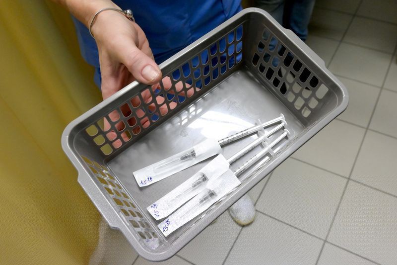 Một nhân viên y tế mang theo khay vắc-xin Pfizer-BioNTech COVID-19 đã chuẩn bị sẵn tại Bệnh viện Trung ương Del-Pest khi dịch COVID-19 tiếp tục bùng phát, tại Budapest, Hungary. Ảnh: Reuters