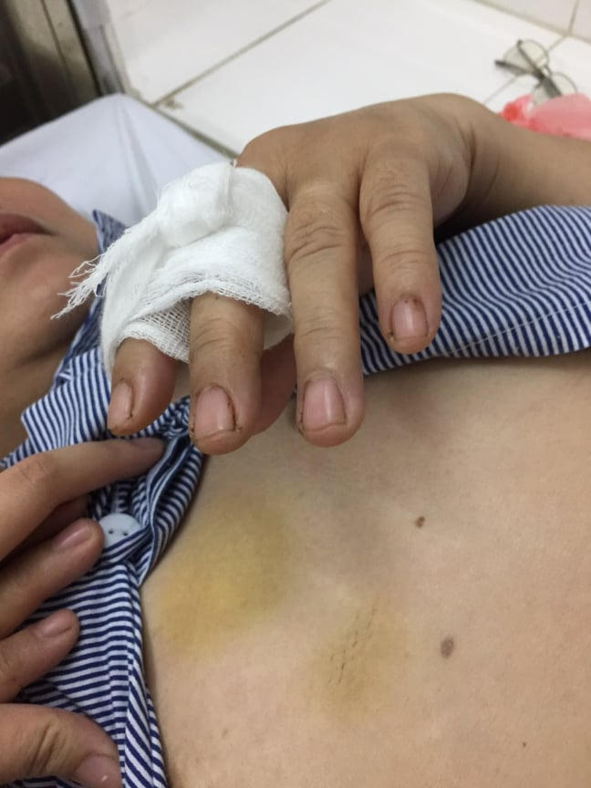 “Không những vậy, cháu Phạm Huy Hoàng còn dùng con dao mà mình mang từ tầng 3 xuống chém vào đầu tôi nhưng do tôi lấy tay đỡ được nên phần bàn tay tôi bị một vết thương nghiêm trọng.