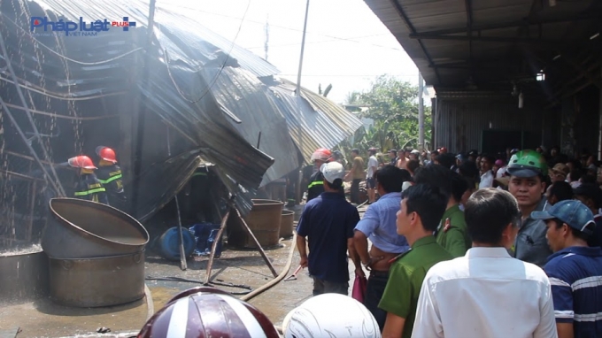 Nhận được tin báo, phòng cảnh sát PCCC công an TP Biên Hòa đã điều động 5 xe cứu hỏa cùng hàng chục chiến sĩ nhanh chóng có mặt tại hiện trường tiến hành dập lửa.