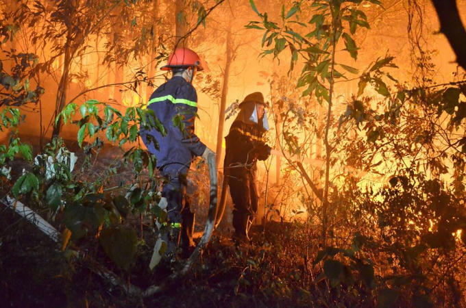 Lực lượng chức năng phải huy động hơn 2.000 người gồm quân đội, công an, dân quân tự vệ và người dân địa phương tham gia chữa cháy.