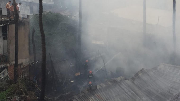 Cháy hàng loạt căn nhà lụp xụp, dân hoảng loạn tháo chạy