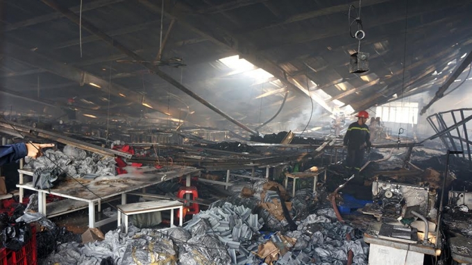 Đám cháy xảy ra lúc 6h15 ngày 29/3 tại xưởng may của Công ty TNHH may Thái Bình nằm trên đường Tô Ngọc Vân (quận 12).