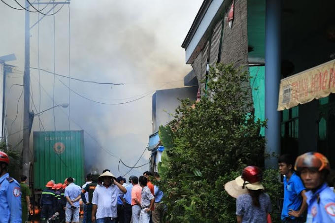| Hiện trường còn lại đám cháy. |