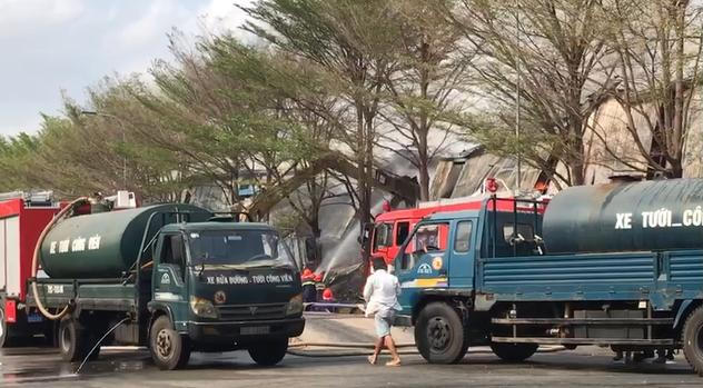 Tại hiện trường, vào khoảng 8h sáng đã có hơn 10 xe cứu hỏa, hơn 10 xe bồn tiếp nước có mặt phục vụ công tác chữa cháy. Lãnh đạo Thị ủy, UBND Thị xã Phú Mỹ cũng trực tiếp có mặt để chỉ đạo công tác cứu hỏa. Các xe công trình được điều động vào hiện trường để phá dỡ các bức tường và mái tôn của Kho để lực lượng chức năng tiếp tục tiếp cận sâu hơn vào đám cháy.