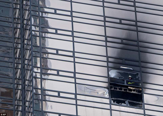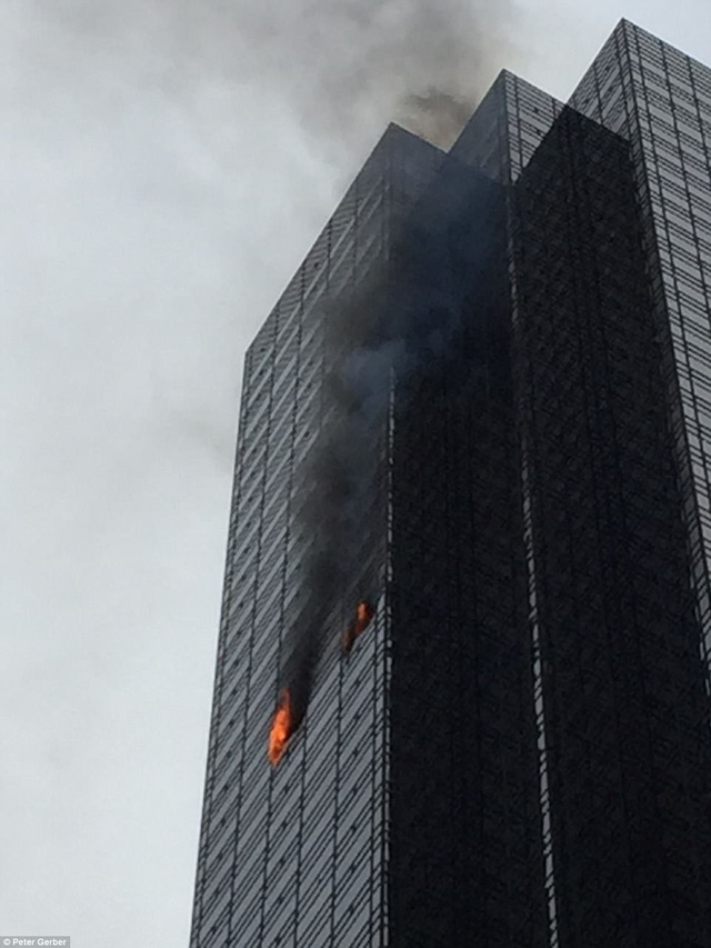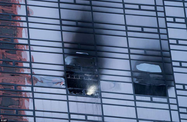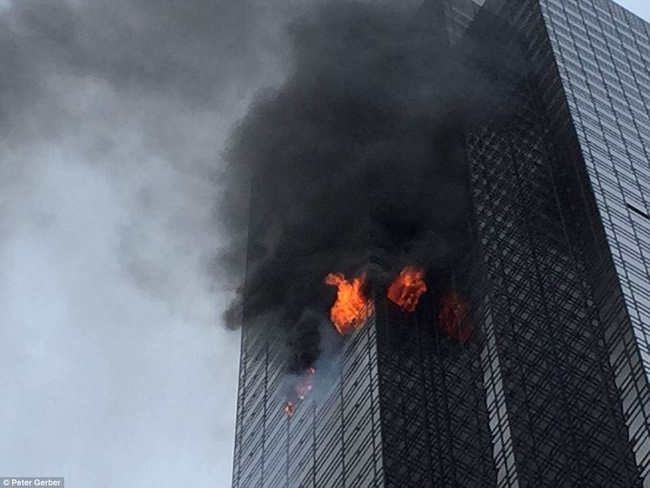 | Lửa và khói đen xuất hiện ở tầng 50 của tòa tháp Trump. |
