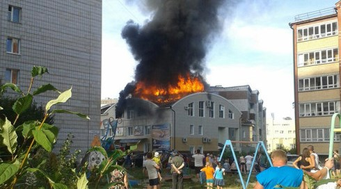 | Truyền thông Nga cho biết đám cháy bắt đầu xuất hiện ở một góc của tòa nhà - nơi có khu vực giải trí. |