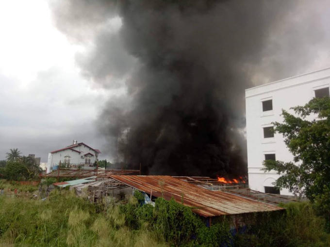 Khi đó, người dân phát hiện bên trong khu nhà xưởng có khói lửa bốc ra từ khu phía sau.