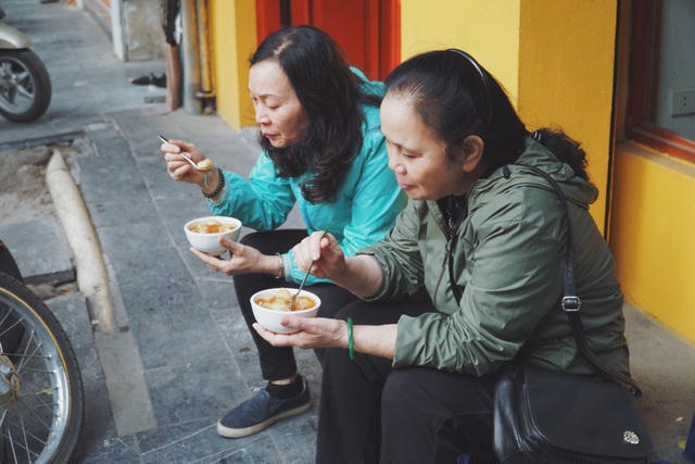 Giữa phố thị phồn hoa, nhiều người đã dừng chân lại trên vỉa hè để thưởng thức một món ăn dân dã