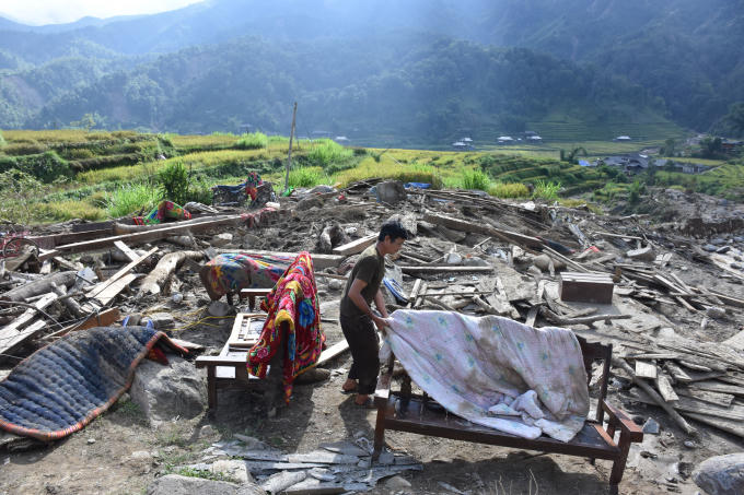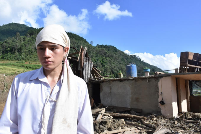 Chứng kiến cảnh nhà bị lũ dữ làm cho tan nát, 5 người thân cũng bị cuốn mất, Lò Văn Mường (huyện Trạm Tấu, tỉnh Yên Bái) chỉ biết đứng lặng nhìn mà không thể khóc.