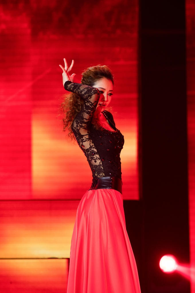 Trong tiết mục, Jennifer Phạm hóa thân thành nàng Carmen trong vở nhạc kịch nổi tiếng. “Bà mẹ 2 con” Jennifer Phạm chứng tỏ sự quyến rũ chết người với bài nhảy này.