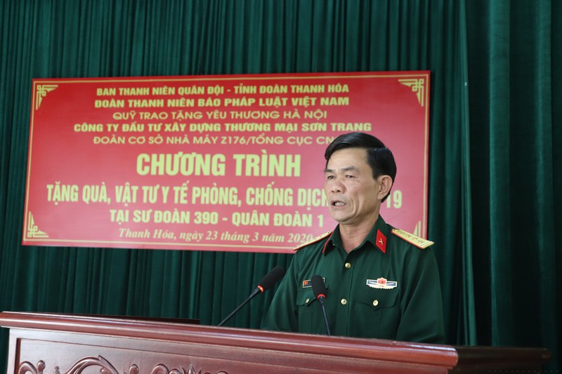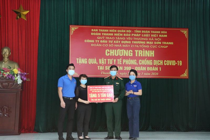 Đồng chí Nguyễn Sỹ Hồng, Bí thư Đoàn Thanh niên Báo Pháp luật Việt Nam cho biết, trước tình hình bệnh dịch Covid-19 đang diễn biến phức tạp, Đoàn Thanh niên Báo Pháp luật Việt Nam đã phối hợp với Quỹ Trao tặng yêu thương quyên tặng những món quà nhỏ cho các đồng chí của Sư đoàn 390. Đồng chí cũng khẳng định đây là một trong những hoạt động thường niên của chi Đoàn, đồng thời cho biết sắp tới sẽ tổ chức được các hoạt động, chương trình khác trong tháng thanh niên.