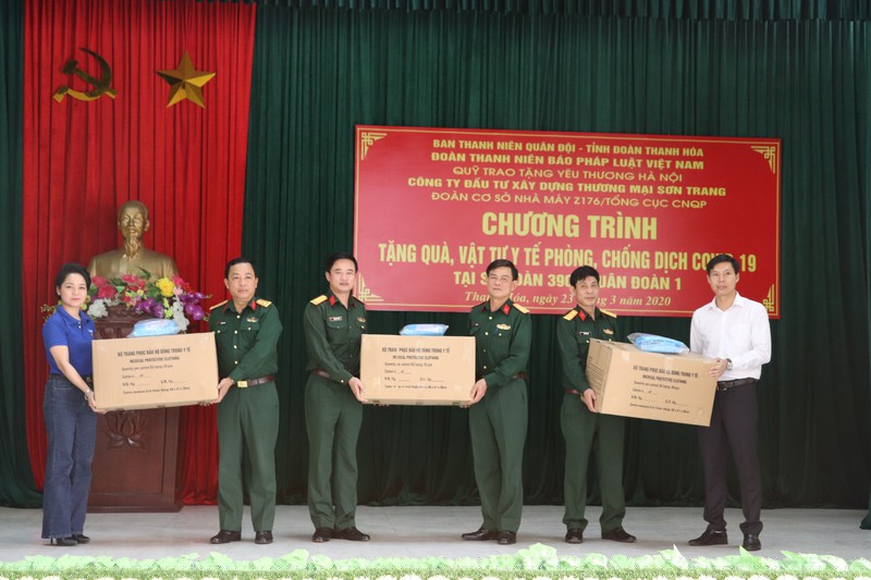 Ngày 23/3, Đoàn Thanh niên Báo Pháp luật Việt Nam phối hợp với Quỹ Trao tặng yêu thương và Đoàn thanh niên Trường Quân sự Bộ Tư lệnh Thủ đô Hà Nội tổ chức Chương trình tặng quà, vật tư y tế phòng, chống dịch Covid-19 tại Sư đoàn 390 – Quân đoàn 1.