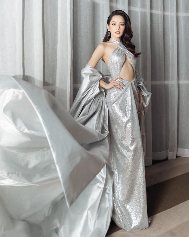 Trong ảnh, Chi Pu diện đầm sequin bạc lấp lánh, kết hợp với áo choàng và trang sức “ton-sur-ton”. Mái tóc của Chi Pu uốn lọn bồng bềnh vén một bên càng tôn lên nét đẹp sang trọng, kiều diễm. Đặc biệt, phần trên váy thiết kế vạt đắp chéo ngực, cut-out táo bạo khoe vòng một “hững hờ” không nội y…