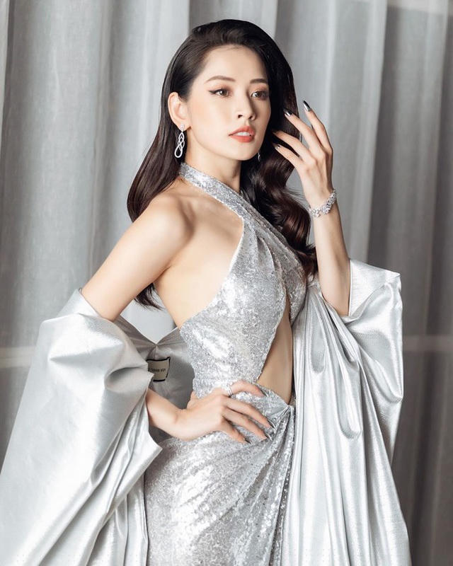 Trong ảnh, Chi Pu diện đầm sequin bạc lấp lánh, kết hợp với áo choàng và trang sức “ton-sur-ton”. Mái tóc của Chi Pu uốn lọn bồng bềnh vén một bên càng tôn lên nét đẹp sang trọng, kiều diễm. Đặc biệt, phần trên váy thiết kế vạt đắp chéo ngực, cut-out táo bạo khoe vòng một “hững hờ” không nội y…