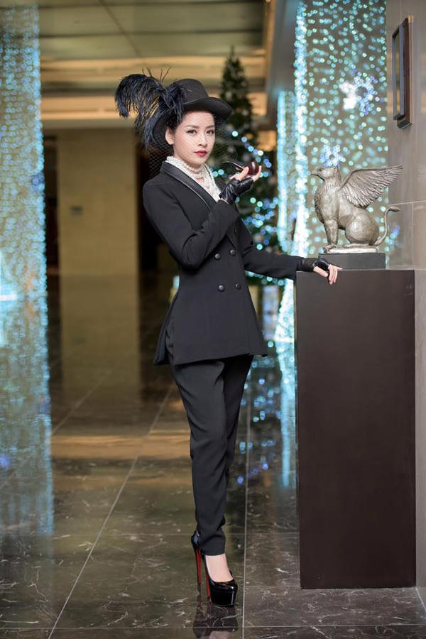 Tham dự sự kiện khai trương thương hiệu mới, nữ diễn viên thay đổi hoàn toàn phong cách. Từ một Chi Pu dễ thương, cá tính pha đôi chút gợi cảm sang một cô nàng đẹp trai mang màu sắc cổ điển.
