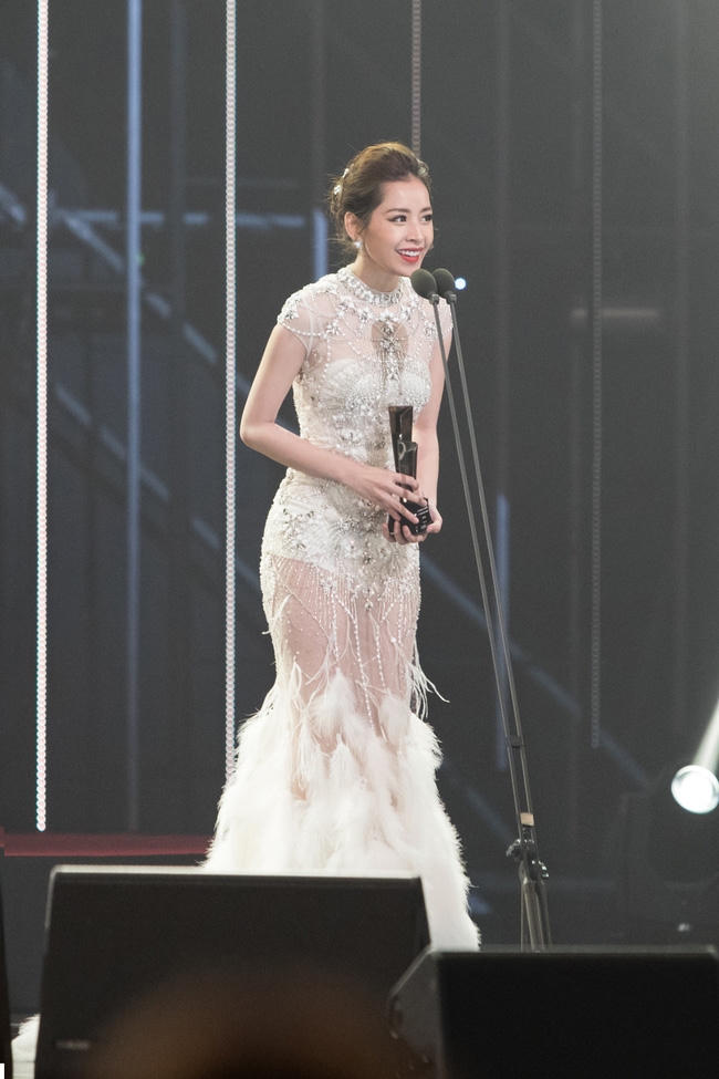 Tại sự kiện này, Chi Pu không chỉ tỏa sáng với chiếc váy trắng bó sát và khuôn mặt xinh đẹp rạng rỡ,cô còn khiến khán giả bất ngờ với khả năng tiếng anh của mình khi phát biểu cảm xúc .