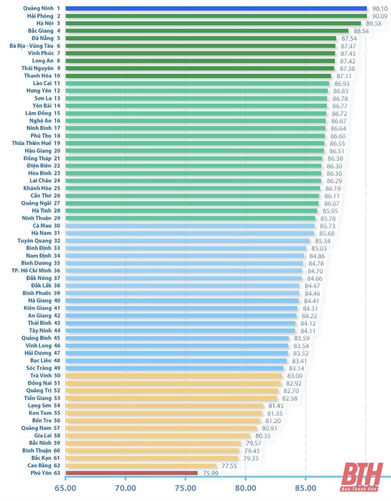 Theo kết quả công bố, năm 2022, Thanh Hóa vươn lên xếp thứ 10/63 tỉnh, thành phố về Chỉ số PAR INDEX với 87,11 điểm.