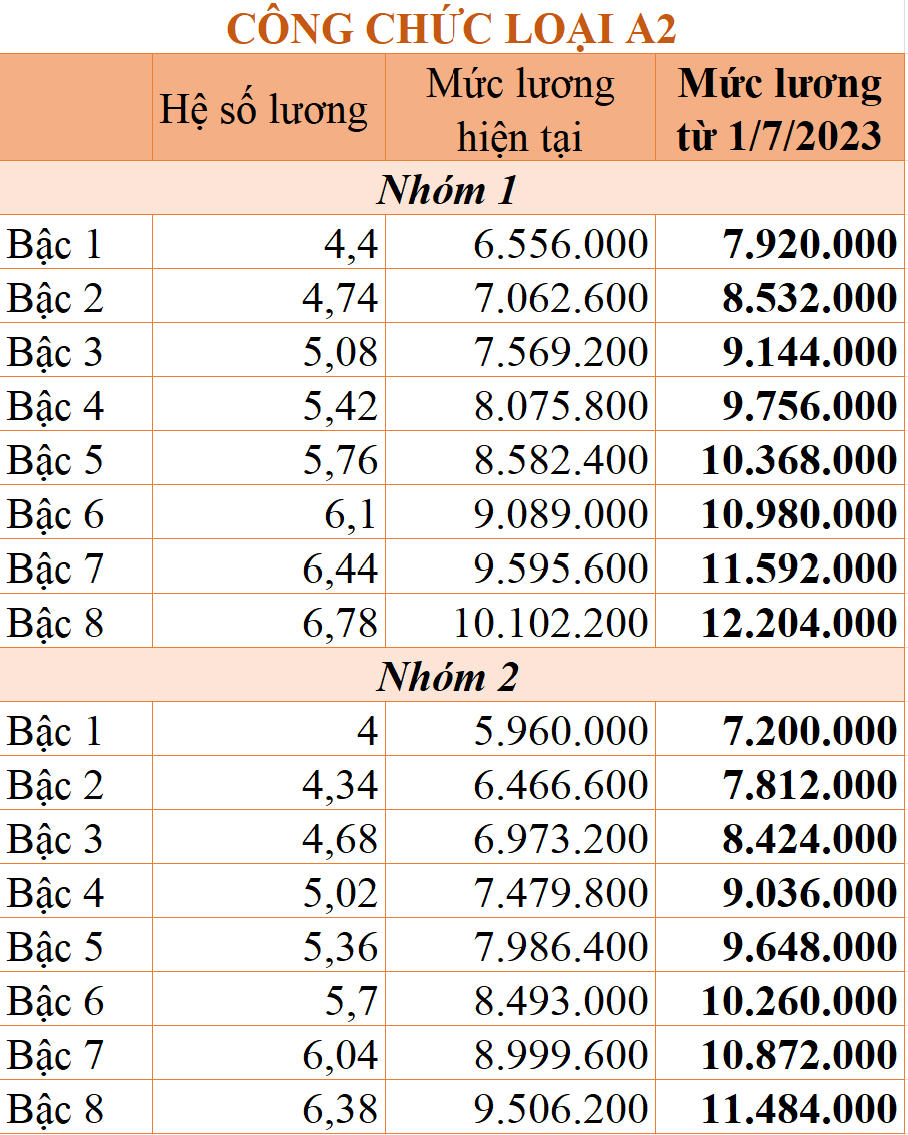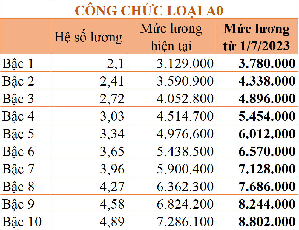 Chi tiết bảng lương công chức áp dụng từ ngày 1/7/2023