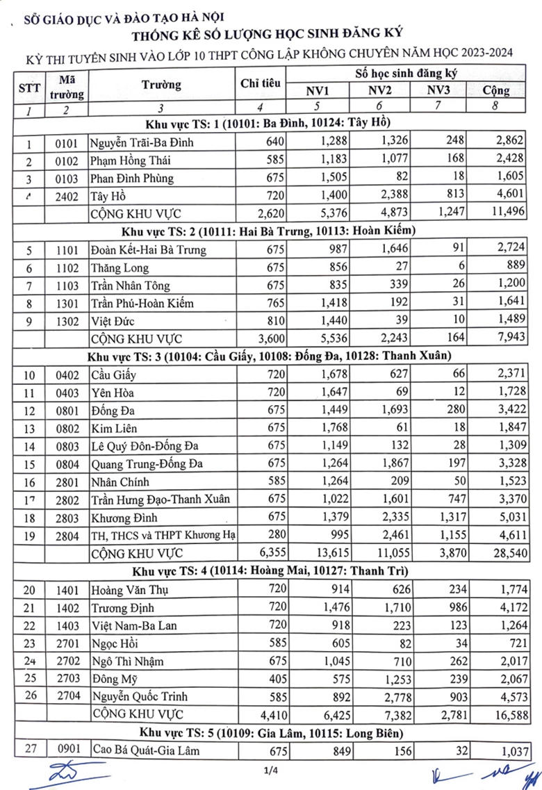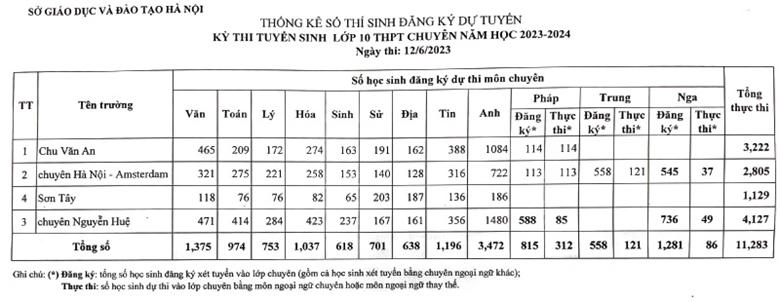 Sở GD&ĐT Hà Nội đã công bố số lượng học sinh đăng ký dự tuyển vào lớp 10 của từng trường THPT công lập và chuyên năm học 2023-2024.