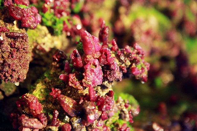 Những viên đá ruby quý hiếm có vẻ đẹp tự nhiên, thô sơ chưa qua khâu xử lý được gắn kết với nhau tạo nên một hòn non bộ độc đáo, hiếm có ở Việt Nam