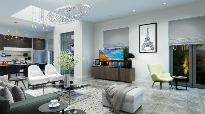 Đó cũng là lý do gia đình chị quyết định “Đông tiến”, chuyển về một khu đô thị sinh thái ở cửa ngõ phía Đông Hà Nội sinh sống. Giữa năm 2017, chị mua một căn biệt thự tứ lập tại Vinhomes Riverside – The Harmony. Mới được nhận bàn giao cách đây 1 tháng, nhà chị đã hoàn thiện thiết kế để chuẩn bị sang sửa.