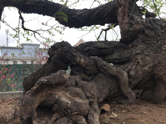 Phần thân, gốc hằn ấn vết thời gian chứng tỏ tuổi đời của "cụ đào" đã rất cao.