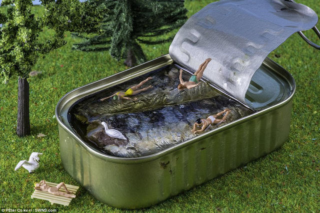 Nghệ sĩ tạo hình người Hungary - Péter Csákvári - được biết tới với những bức ảnh sống động sử dụng những mô hình nhỏ xíu để tái hiện đời sống con người theo một góc nhìn ấn tượng hơn hẳn. Những sắp đặt mô hình của Péter Csákvári không quá “hiếm có khó tìm”, nhưng cách anh bài trí và chụp ảnh đã tạo nên những khuôn hình cuốn hút, khiến người xem mê mải nhìn ngắm.
