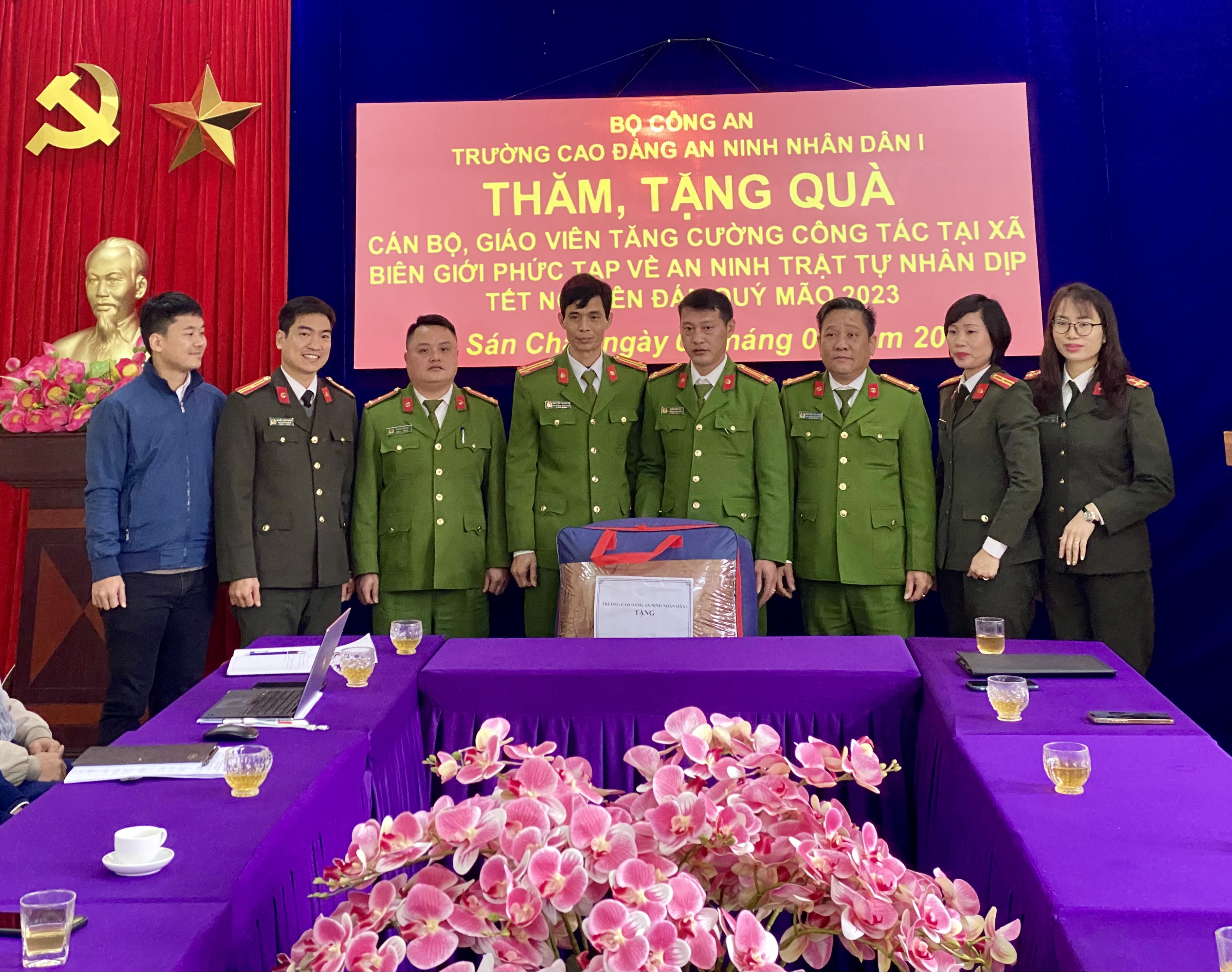 Trường Cao đẳng An ninh nhân dân I đã cử đoàn công tác đến thăm, chúc Tết và tặng quà cho cán bộ, chiến sĩ Công an xã Sán Chải, huyện Simacai, tỉnh Lào Cai.