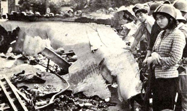 | B-52 phơi xác trên đường phố Hà Nội, một trong những tấm ảnh nổi tiếng về trận “Hà Nội - Điện Biên Phủ trên không” |