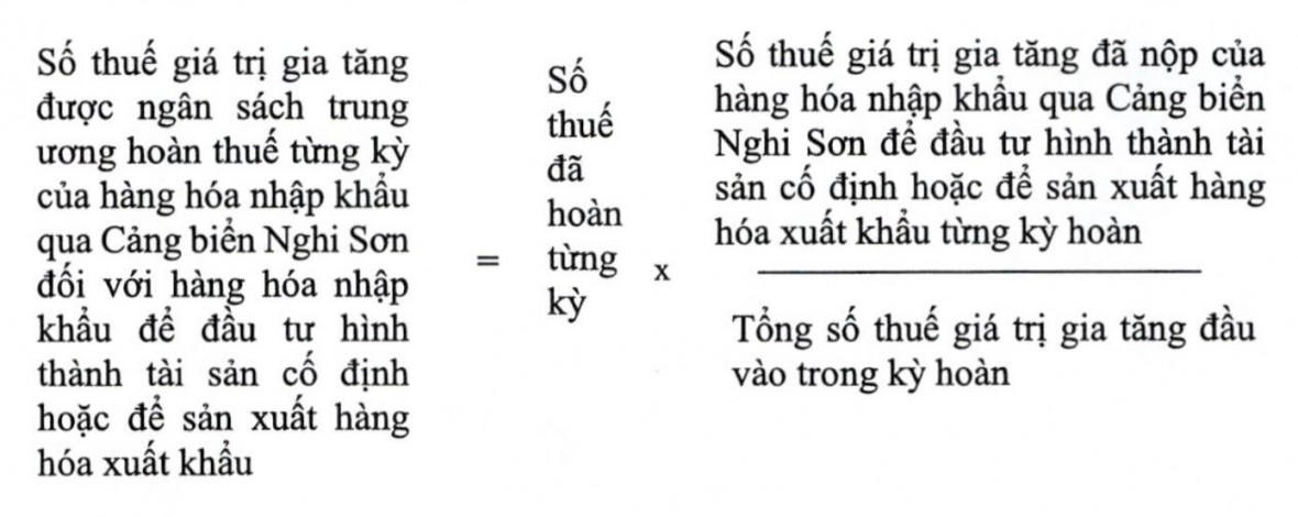 b) Số thuế giá trị gia tăng đã nộp của hàng hóa nhập khẩu qua Cảng biển Nghi Sơn để đầu tư hình thành tài sản cố định hoặc để sản xuất hàng hóa xuất khẩu từng kỳ hoàn là tổng số thuế giá trị gia tăng đã nộp khâu nhập khẩu của các doanh nghiệp nhập khẩu qua Cảng biển Nghi Sơn tương ứng kỳ hoàn thuế (căn cứ số hải quan cung cấp và số người nộp thuế kê khai).