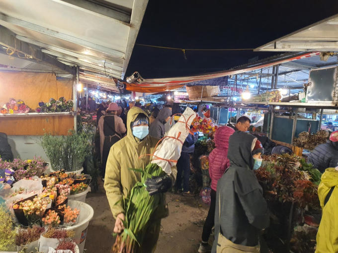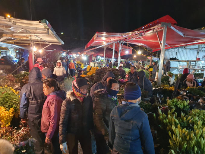 Theo ghi nhận của phóng viên Tòa soạn Pháp luật Plus, từ 23h đêm ngày 11/1 (tức ngày 29/11 âm lịch), các chủ hoa, thương lái đã bắt đầu về họp phiên chợ cuối tháng 11 âm lịch. Chỉ chưa đầy 2 giờ đồng hồ sau, chợ bắt đầu đông đúc, nhộn nhịp bất kể nhiệt độ ngoài trời lúc này đang là 10 độ C.