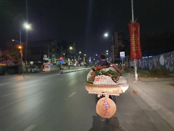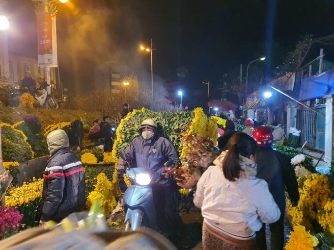 Hàng trăm chiếc xe máy xếp ngăn nắp hai bên đường, mỗi chiếc xe là 1,2 bóng người, thoăn thoắt ôm hoa, bó hoa, xếp hoa ngăn nắp, chắc chắn mà chẳng chậm chạp. Những con người này dường như đã quên đi và không còn cảm thấy giá rét của mùa đông.