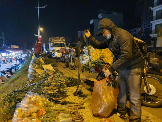 Anh Trần Văn T, một thương lái mua hoa đang xếp hoa lên xe để mang về.