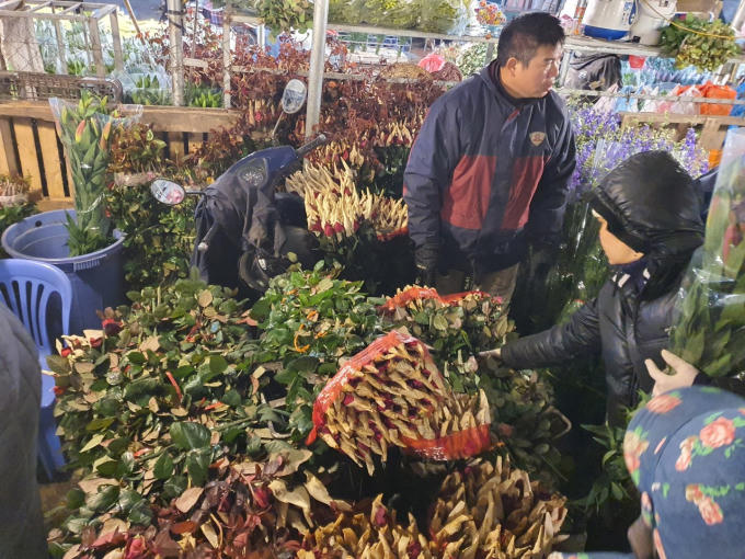 Đến khoảng 2h30 phút sáng 12/1, phiên chợ đã xuất hiện cảnh chen chúc đông người do số lượng thương lái và khách mua hoa ngày càng nhiều.